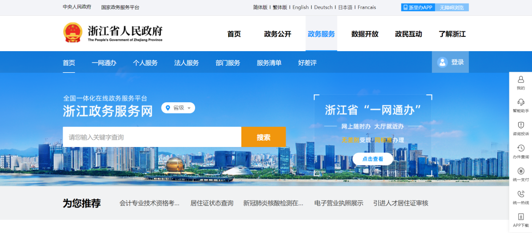 1. 進(jìn)入政務(wù)服務(wù)網(wǎng)“http://zwfw.zj.gov.cn/”
